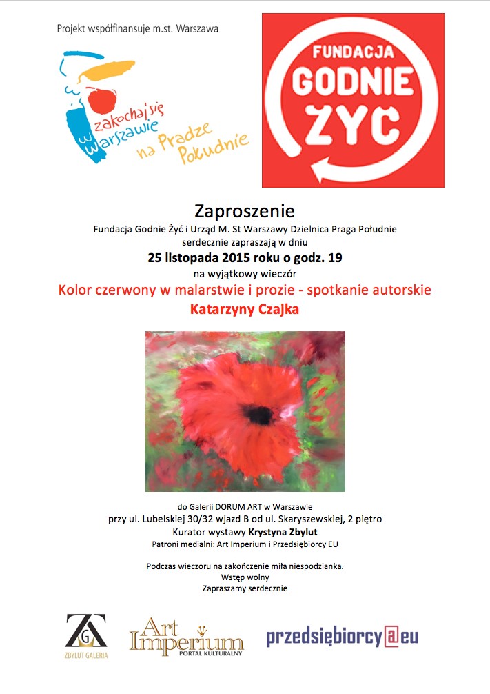 Nasza klubowiczka zaprasiła nas na spotkanie autorskie poświęcone kolorowi, który w jej obrazach zdecydowanie dominuje. Odbyło się ono w prowadzonej przez nią galerii DORUM ART, miejscu naprawdę niezwykłym... (patronat magazynu przedsiębiorcy@eu).