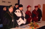 Najpierw były nagrody dla najlepszych absolwentów (absolwentek ściślej), a potem ślubowanie tych, którzy mają (lub przynajmniej mogą) w ich ślady pójść. Studentów pierwszego roku. To też odbyło się uroczyście. Z wręczaniem indeksów i uderzeniem w ramię rektorskim berłem.